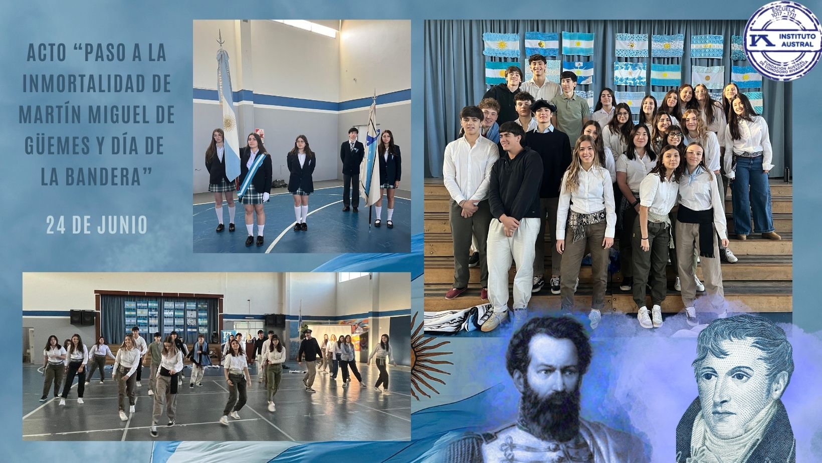 El día 24 de junio nos reunimos para recordar la implicancia de dos grandes protagonistas de la historia de nuestra nación, cuyos aportes fueron significativos en la lucha por la independencia y cuyos valores simbolizan nuestro espíritu patrio: Martín Miguel de Güemes y Manuel Belgrano, a quien rememoramos en el día de la bandera.